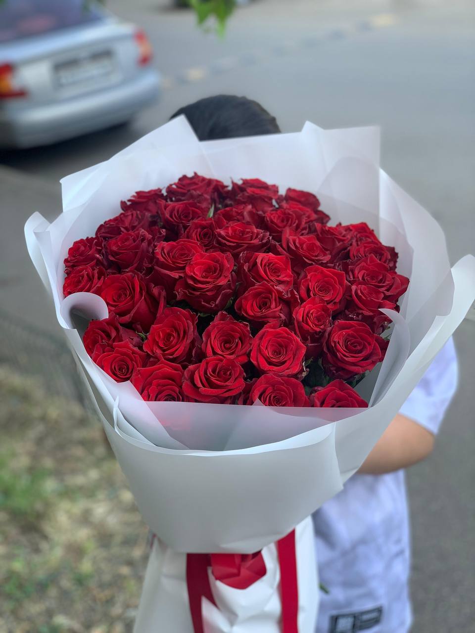 Букет из 31 красной розы 50 см