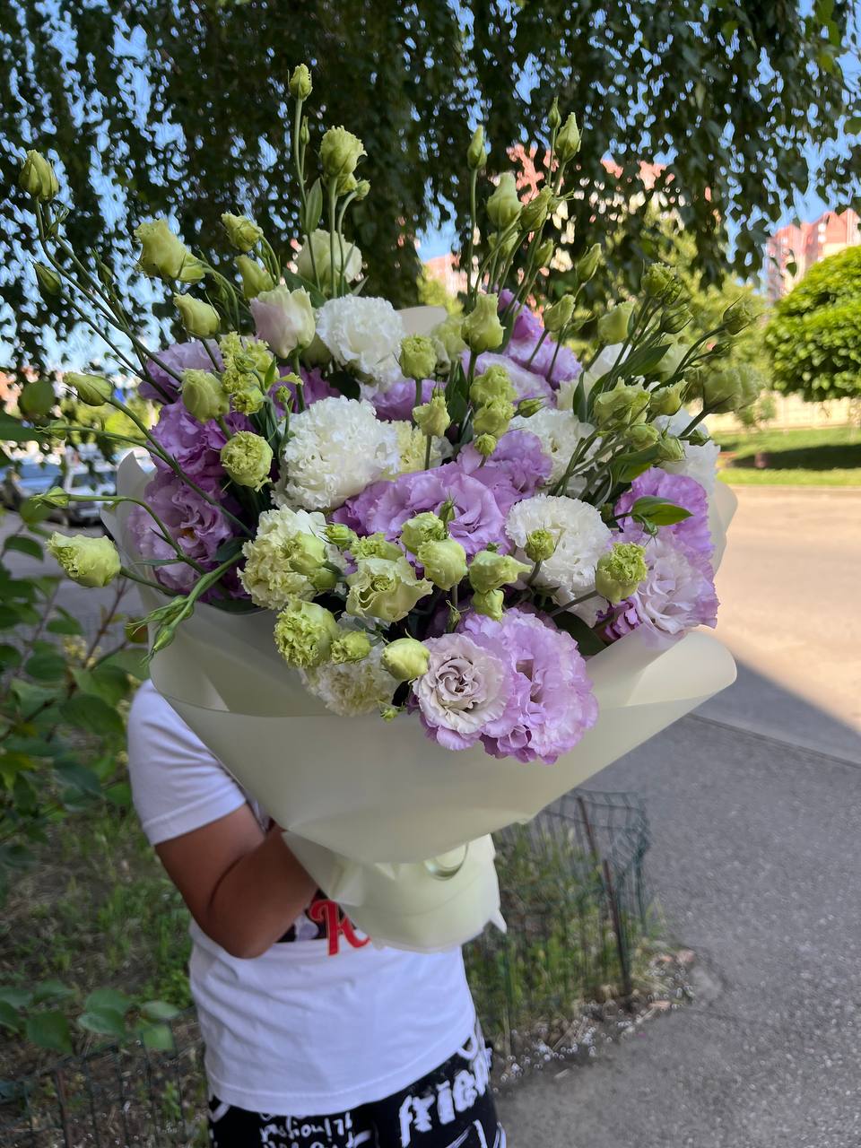 Букет эустомы белой и лавандовой