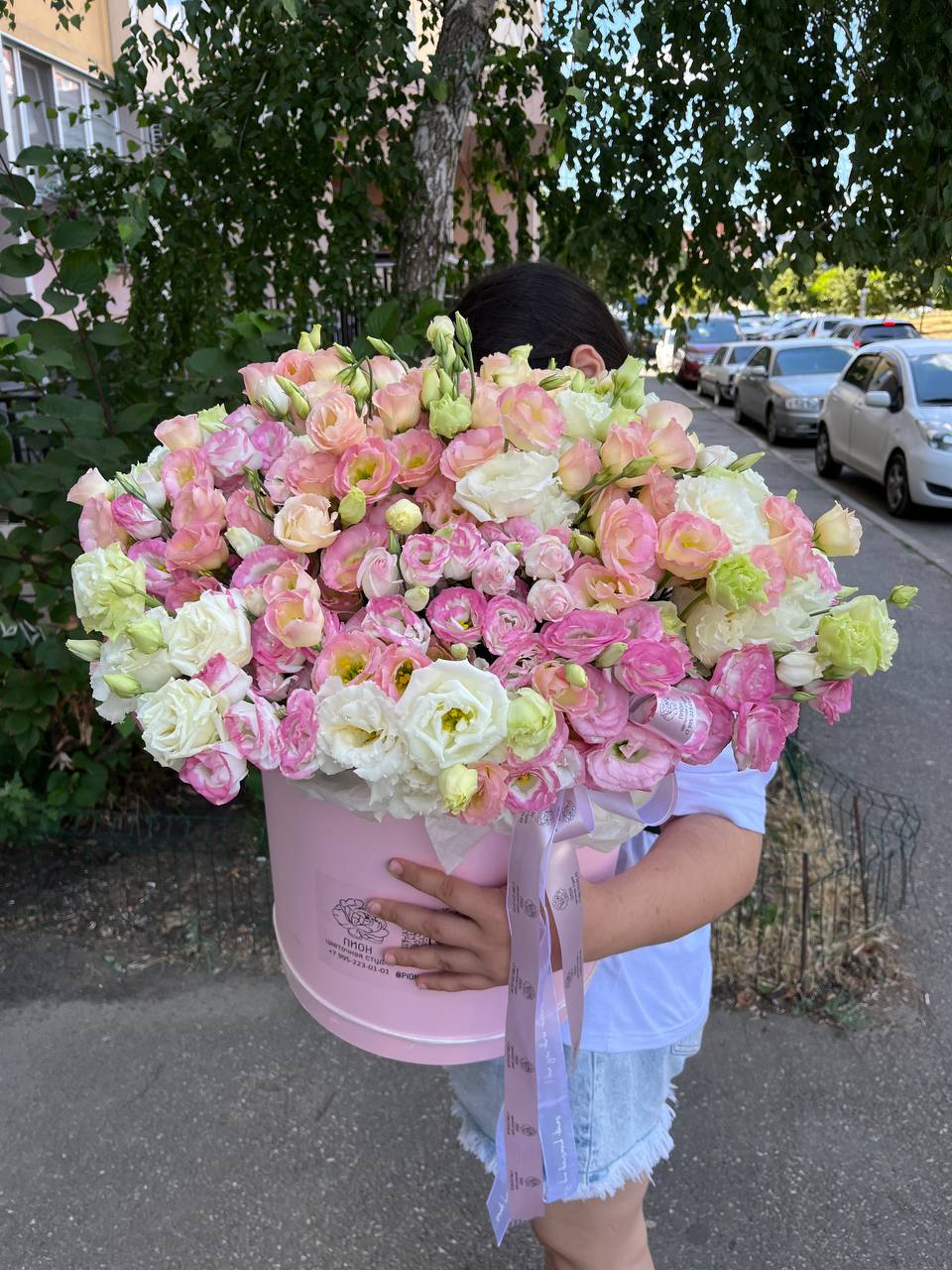 Большая коробка из нежной стойкой эустомы