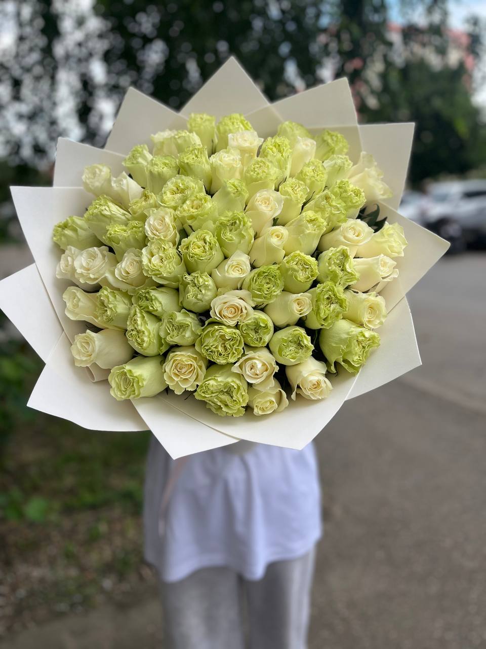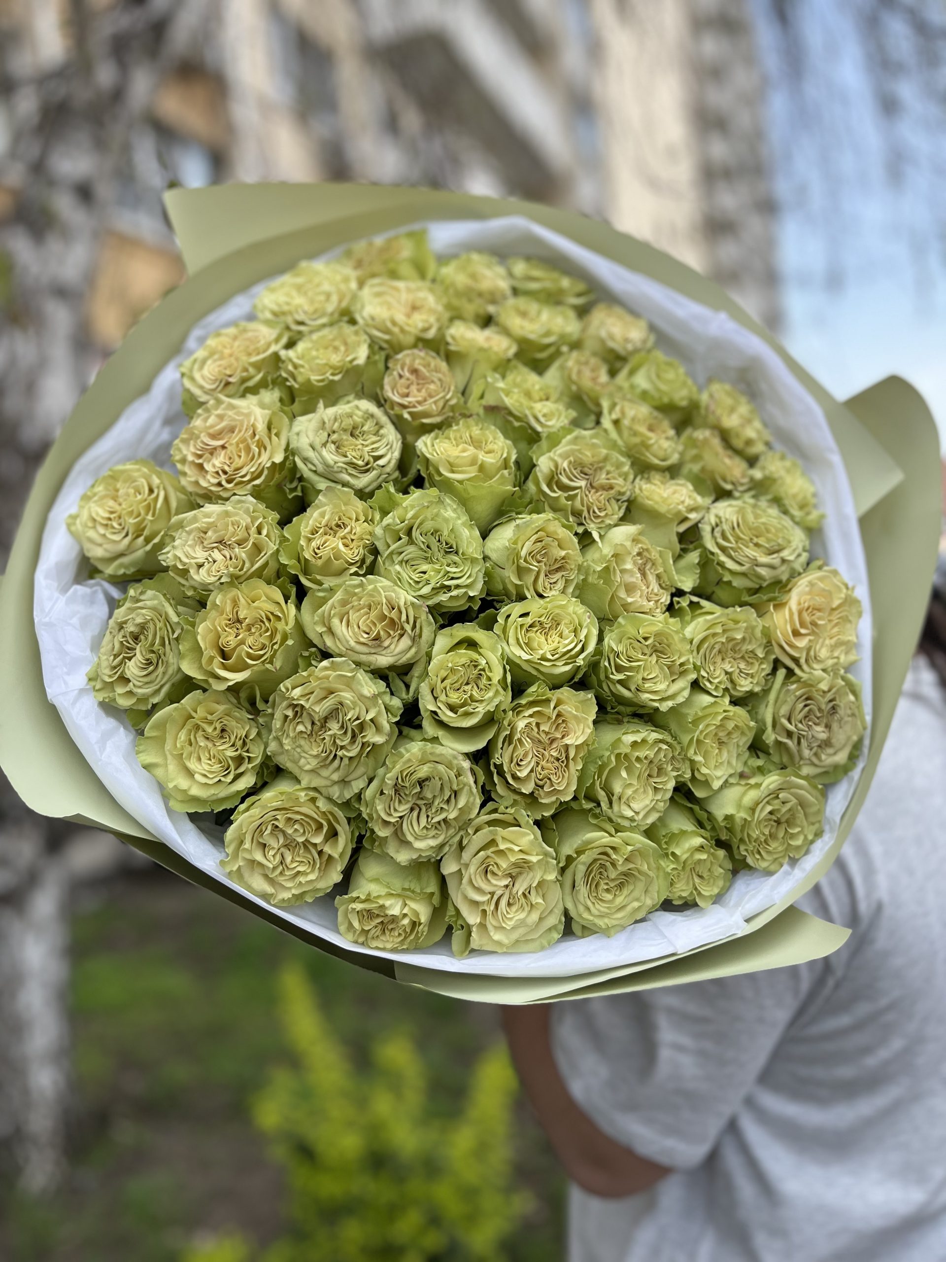 Розы импортные пионовидные Лимонад с огромным бокалом и длиной 70 см