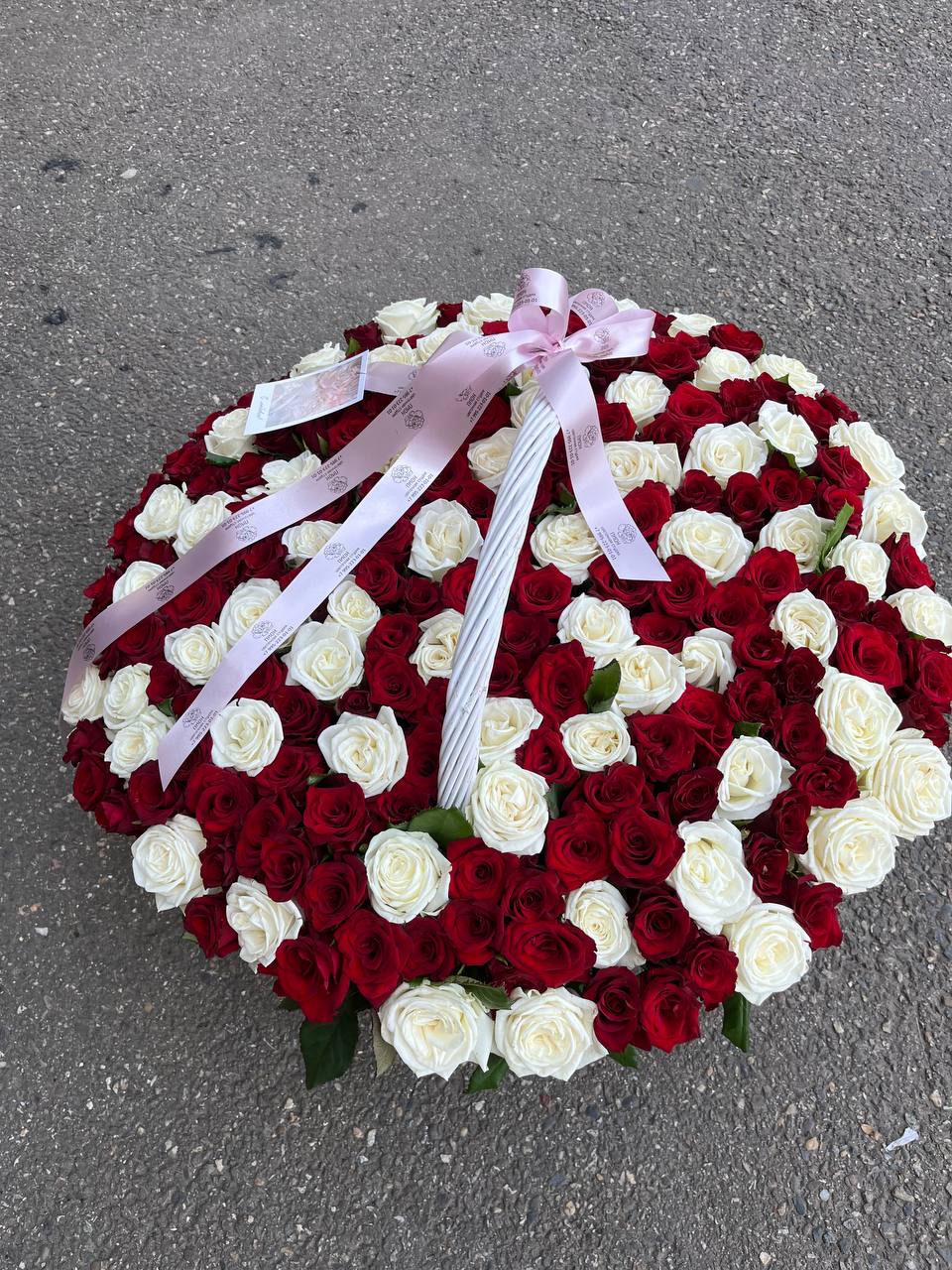 Корзина из 201 розы микс белой и красной российских производителей