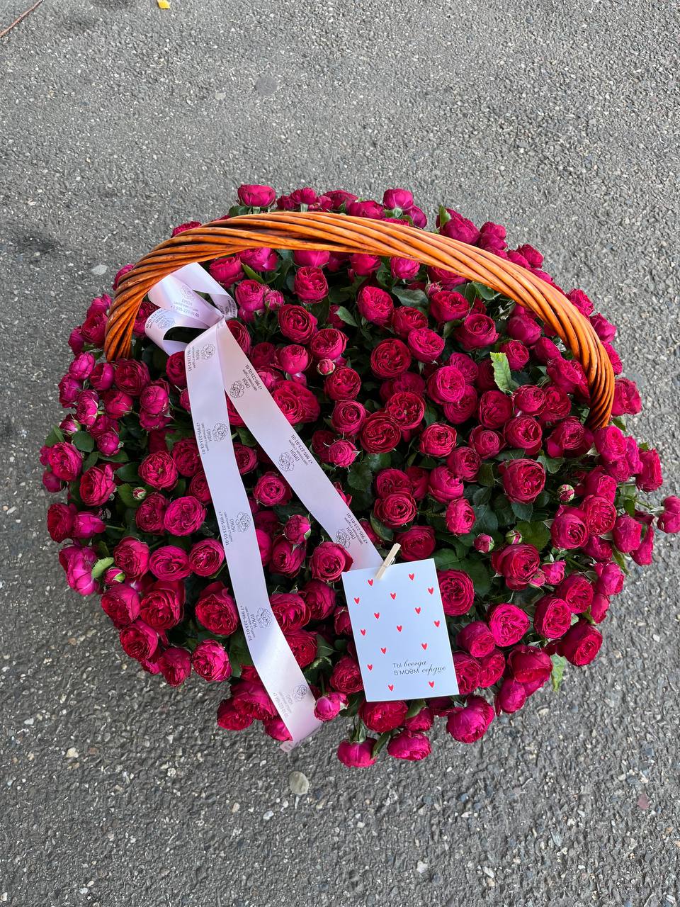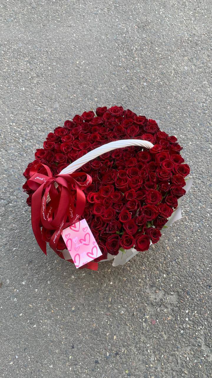 Корзина из 101 красной ароматной розы