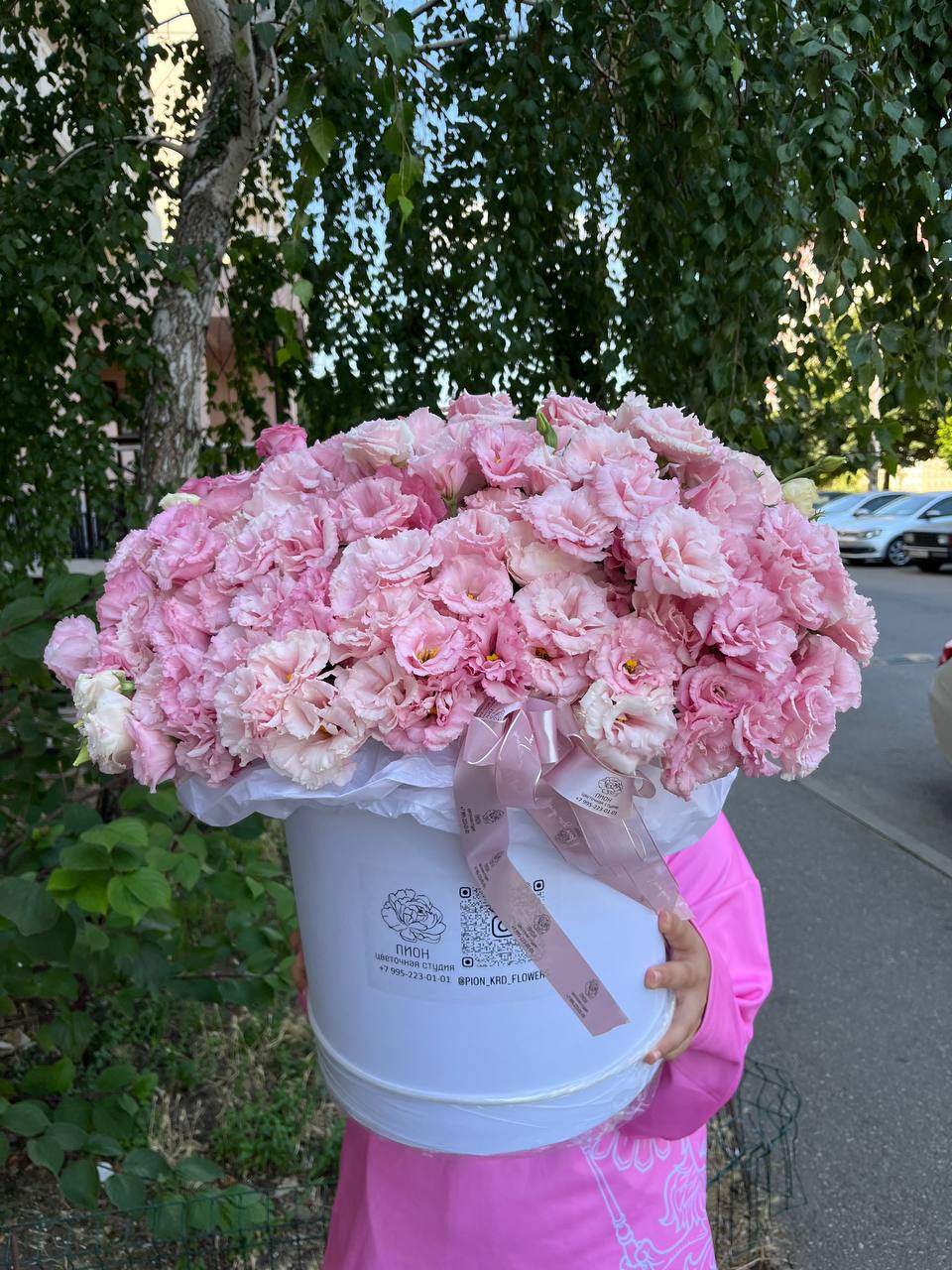 Коробка из розовой эустомы