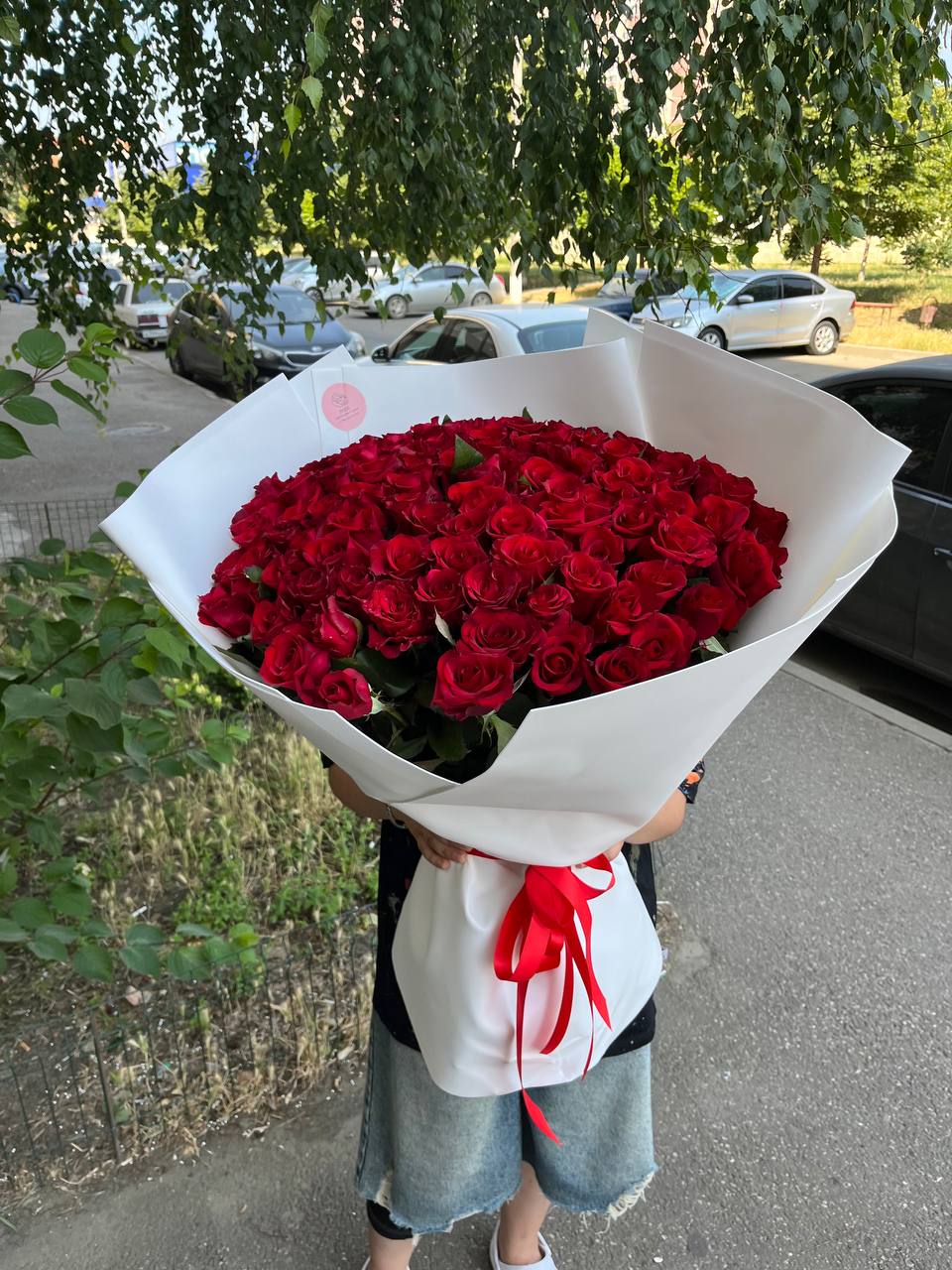 Букет из 101 розы сорта Рэд наоми с крупным бутоном