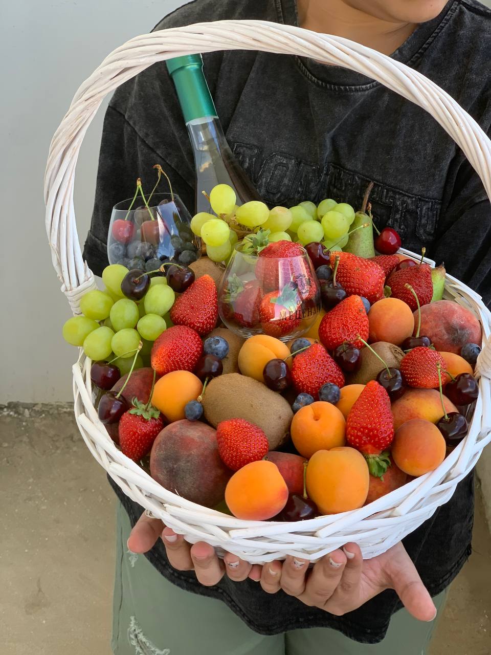 Корзина ягодная из клубники, голубики и черешни , с добавлением голубики и винограда