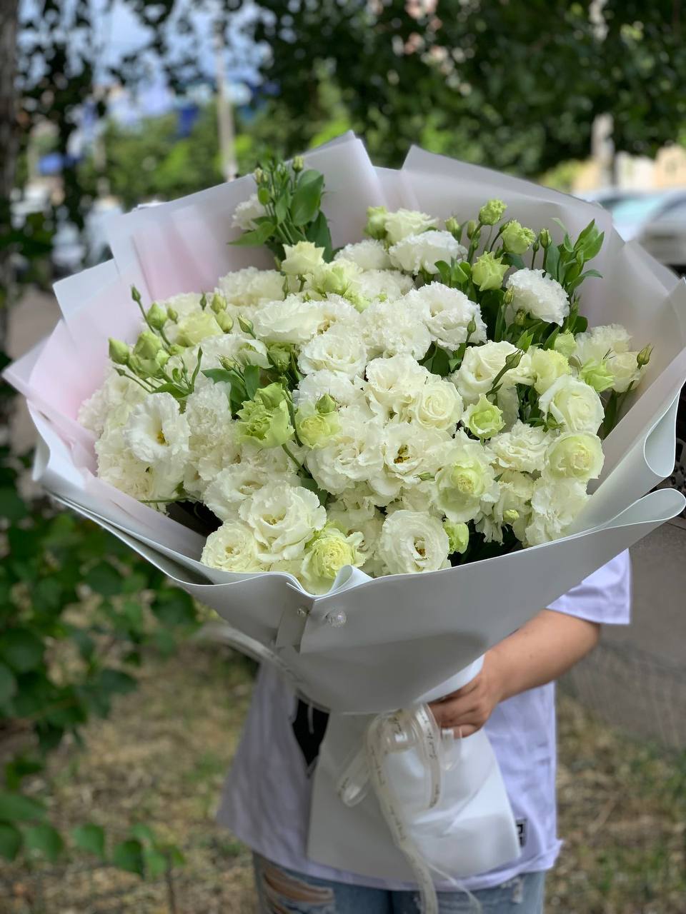 Букет из 29 веток эустомы нежных оттенков в упаковке гигант
