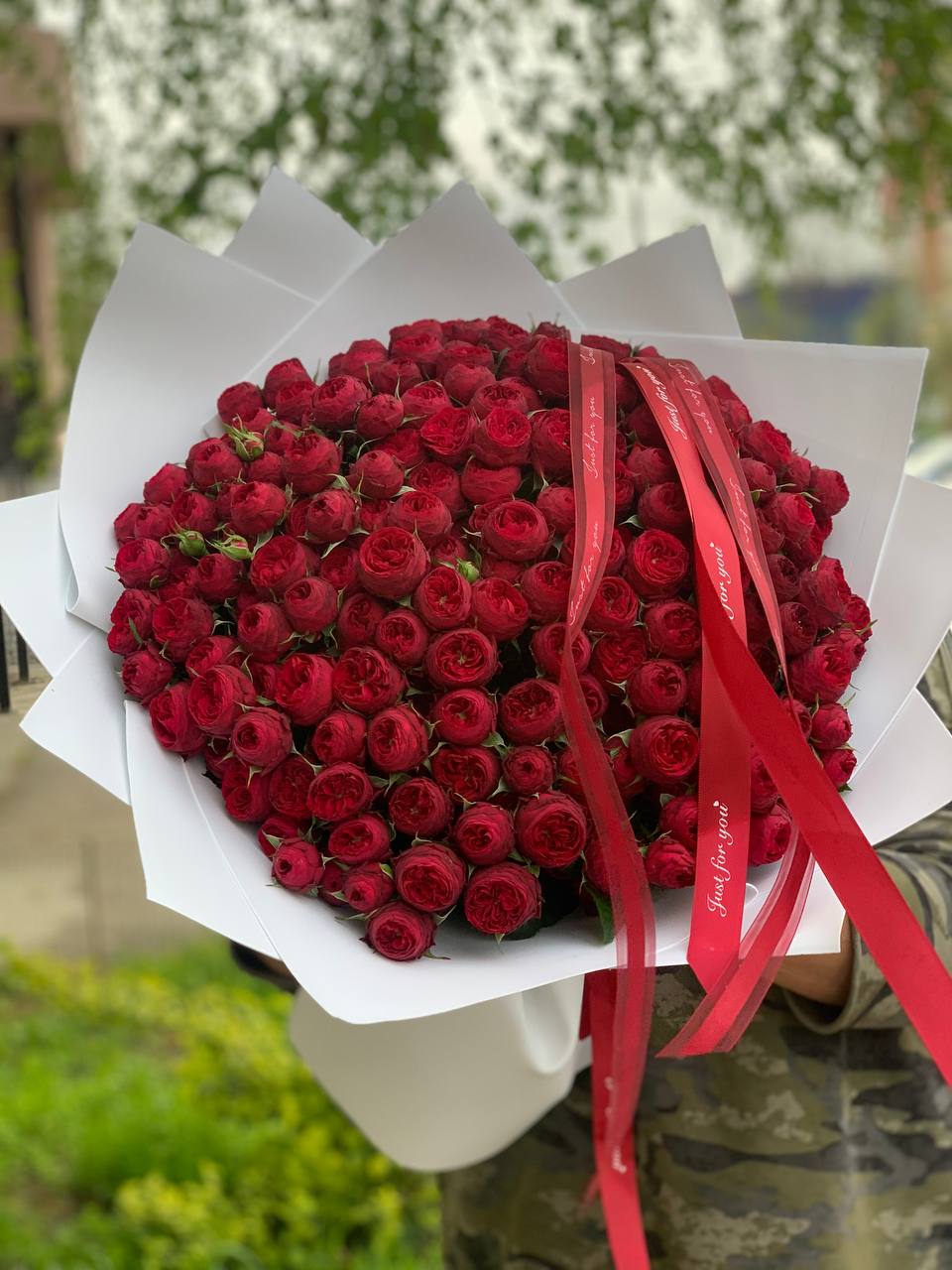 Букет из 31 ветки пионовидных кустовых роз Марун