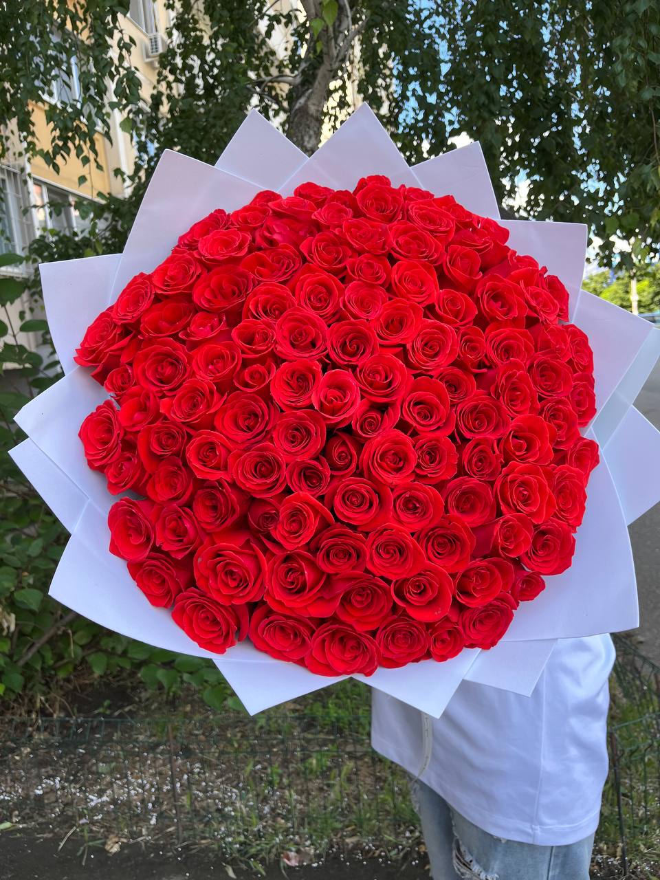 Букет из 101 розы сорта Рэд наоми с крупным бутоном