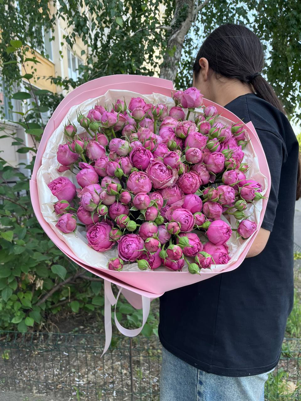 Букет из 31 ветки пионовидных кустовых роз Марун