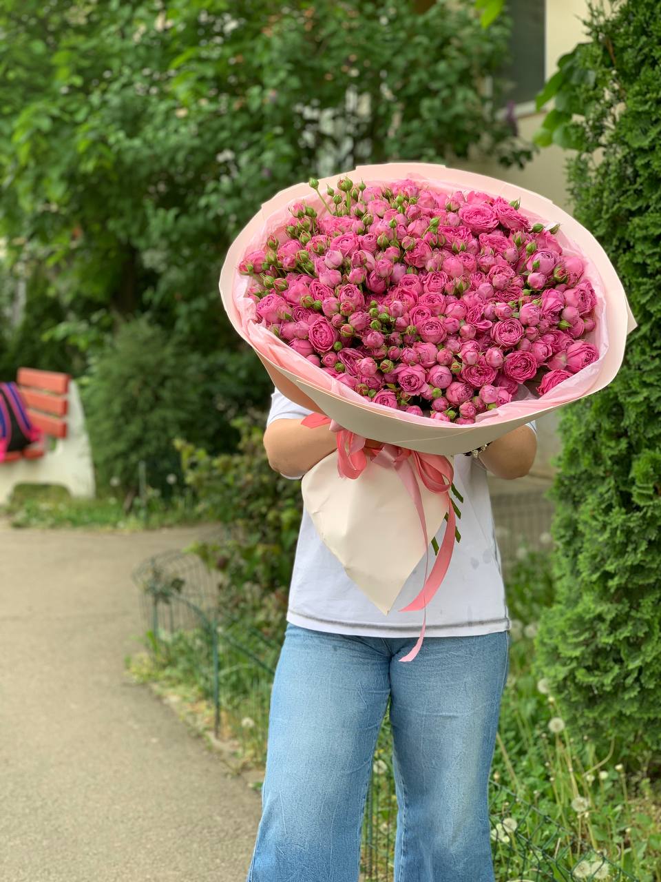 Большой букет из пионовидной кустовой розы сорта мисти баблс