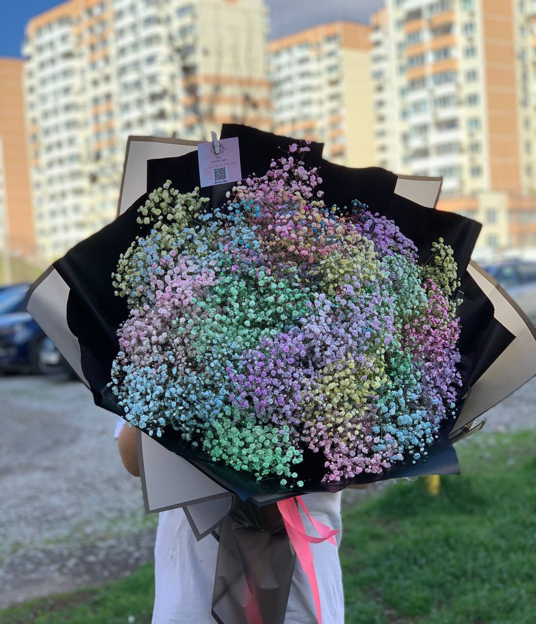 Букет огромный высотой 1.70 м из гипсофилы разных цветов