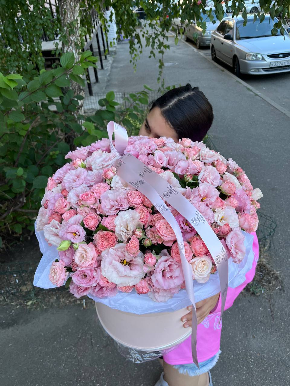 Корзина из вывернутых роз и пионовидной кустовой розы